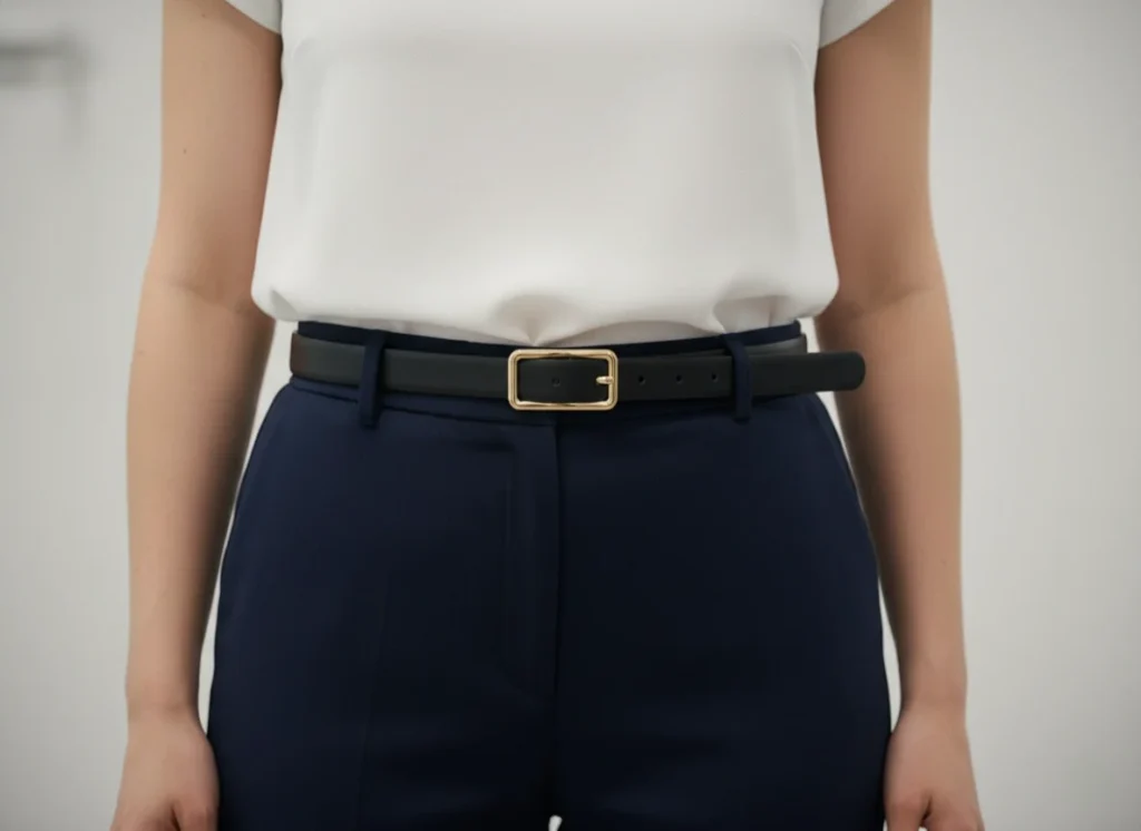 By tucking your top in smoothly and adding a high-quality belt, you create a focal point. The belt acts as the “Third Piece.” It defines your waist and signals intention. It says, “I didn’t just throw this on; I styled it.”