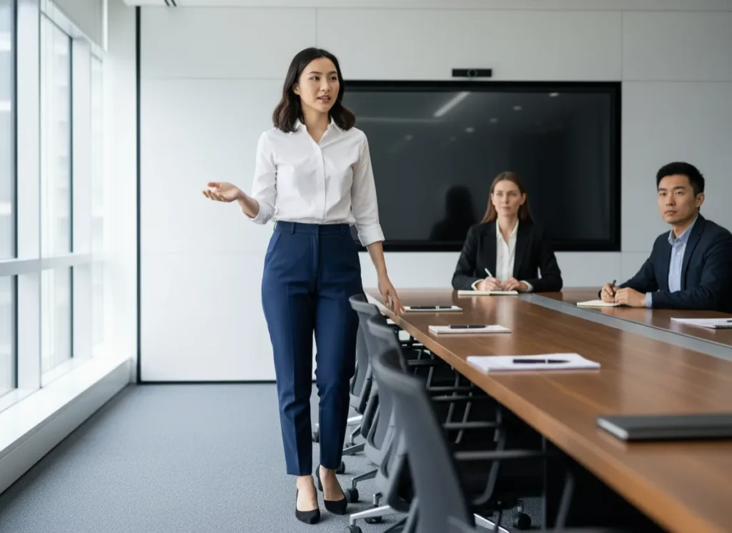 The Scenario: You are presenting to a client or meeting the bosses. You need to look authoritative, capable, and sharp.