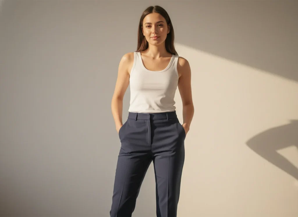 Why It Flattens: A high rise elongates your legs, making you look taller. It also holds you in gently, preventing that “muffin top” feeling that low-rise pants often create. It is comfortable for sitting at a desk all day because it doesn’t dig into your hips.
