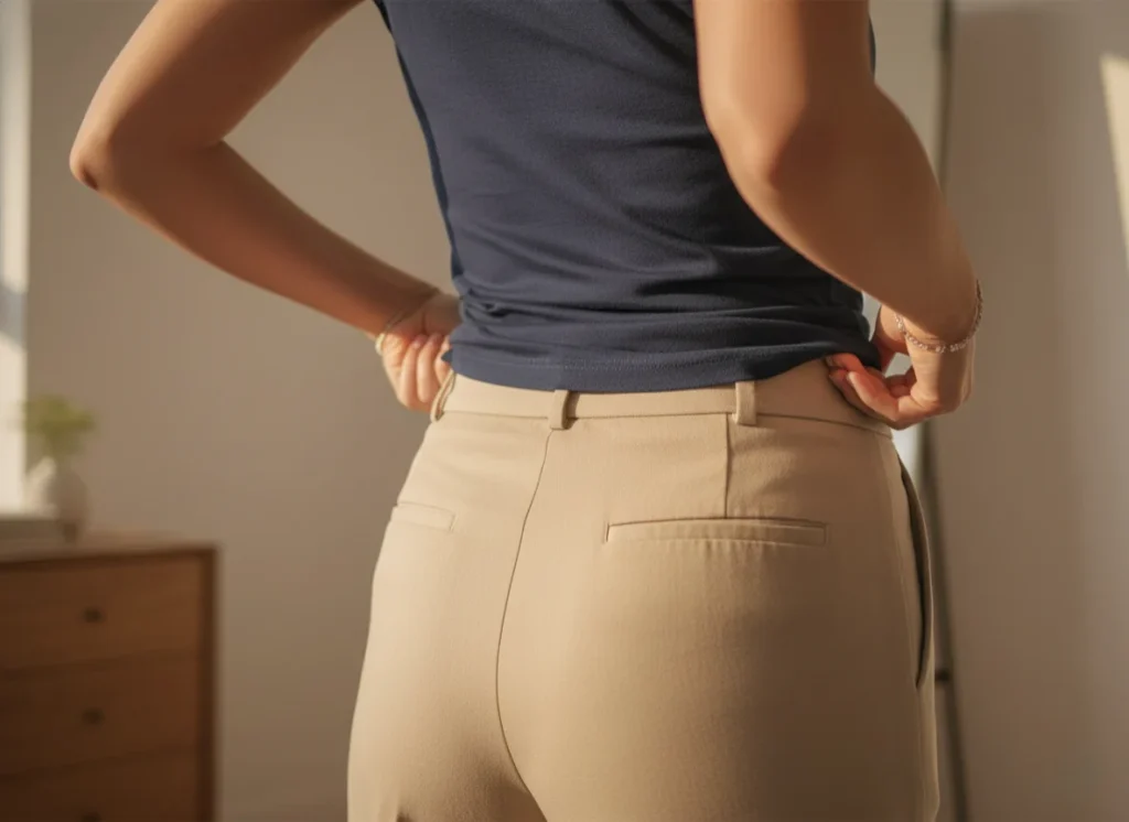 What to Look For: Look for brands that offer “Curvy Fit” lines or trousers with a contoured waistband. A contoured waistband is cut on a curve (like a smiley face) rather than a straight line, so it hugs your lower back.