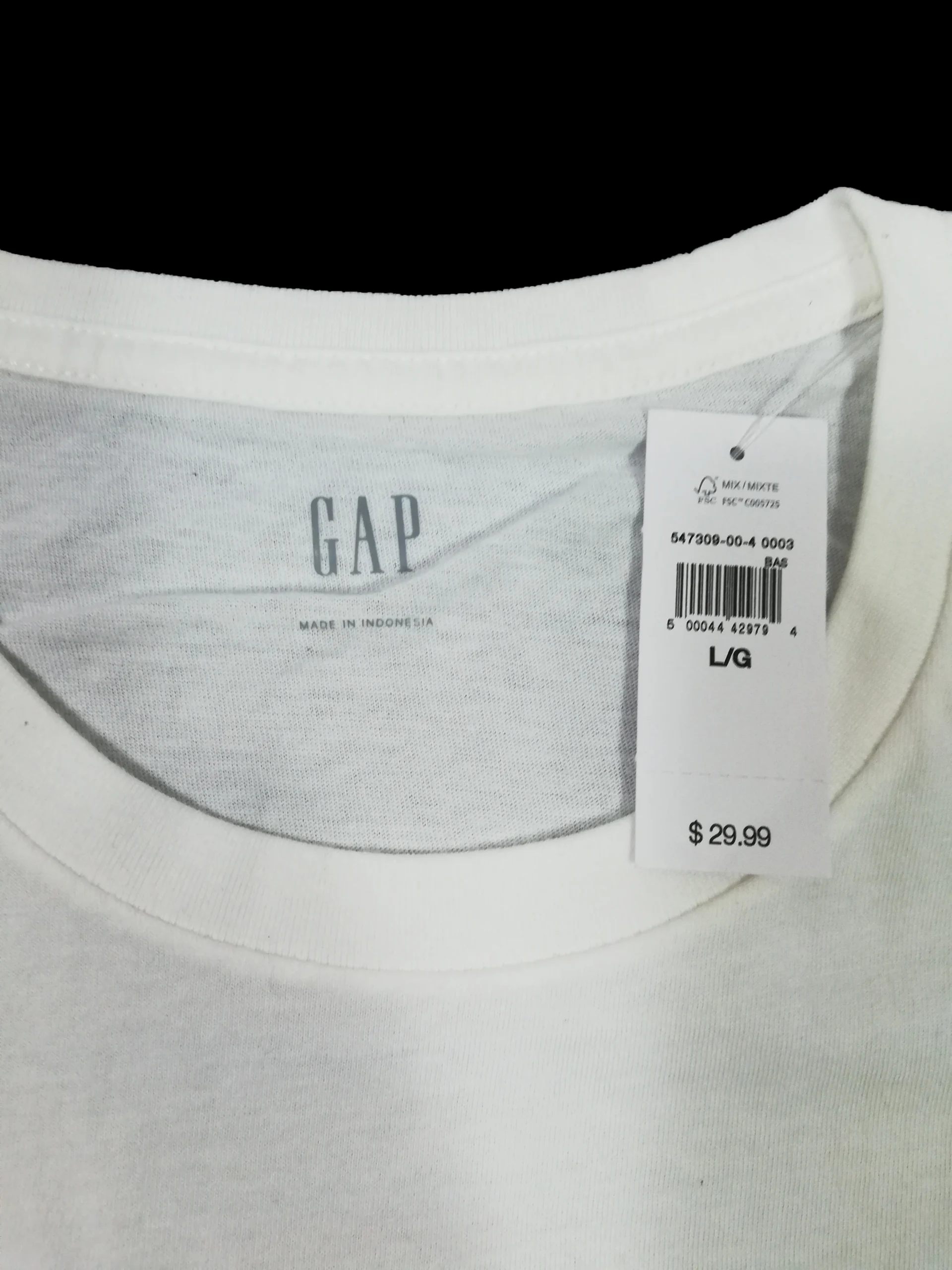 Keep it simple and timeless with this GAP Men’s Logo T-Shirt in white, size Large. Crafted from soft cotton jersey, this essential tee features a clean crew neckline, short sleeves, and the signature GAP logo at the chest. The solid color and relaxed fit make it an easy match for any casual outfit.