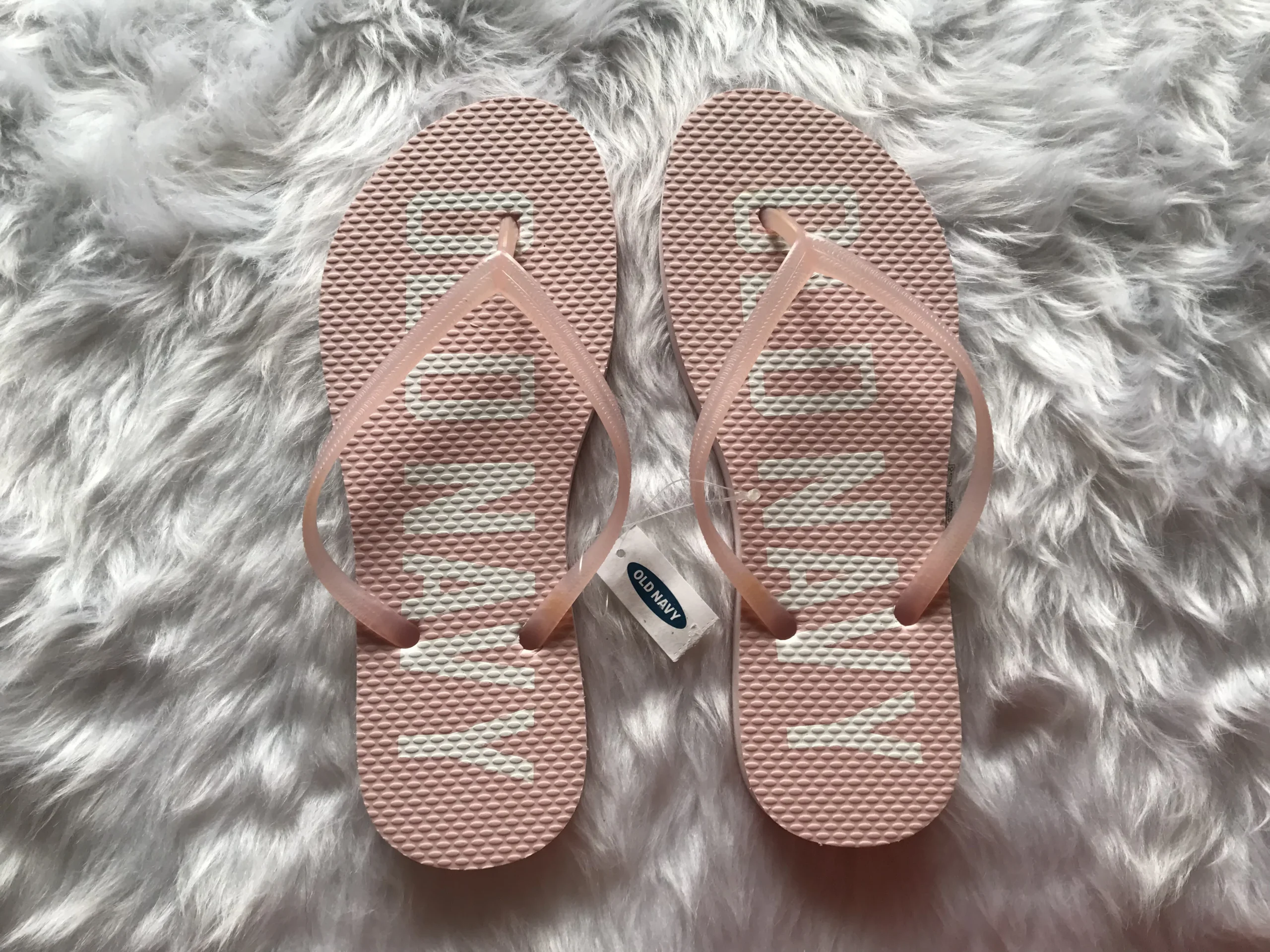 Step into everyday comfort with these Old Navy Pink Flip Flops, size 6 (Large). Designed in a cheerful pink hue, these sandals feature a bold Old Navy logo printed on the footbed for a fun, branded touch. The classic thong design and lightweight construction make them a go-to for warm weather and casual days.