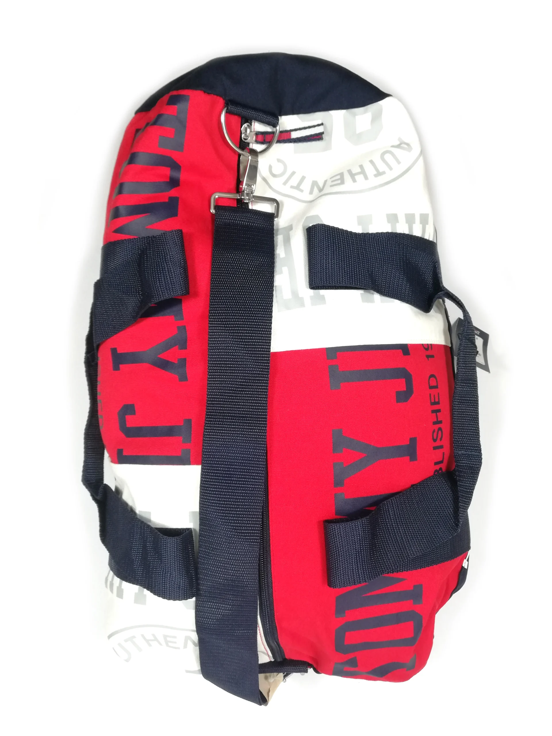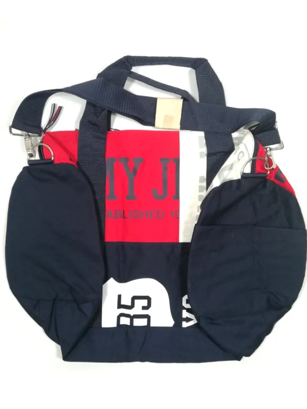 The Tommy Hilfiger Tommy Jeans Duffle Bag is your all-in-one travel companion — bold, practical, and unmistakably Tommy. In the brand’s signature navy blue, red, and white, this large duffle makes a statement while keeping your essentials neatly packed and ready to go.