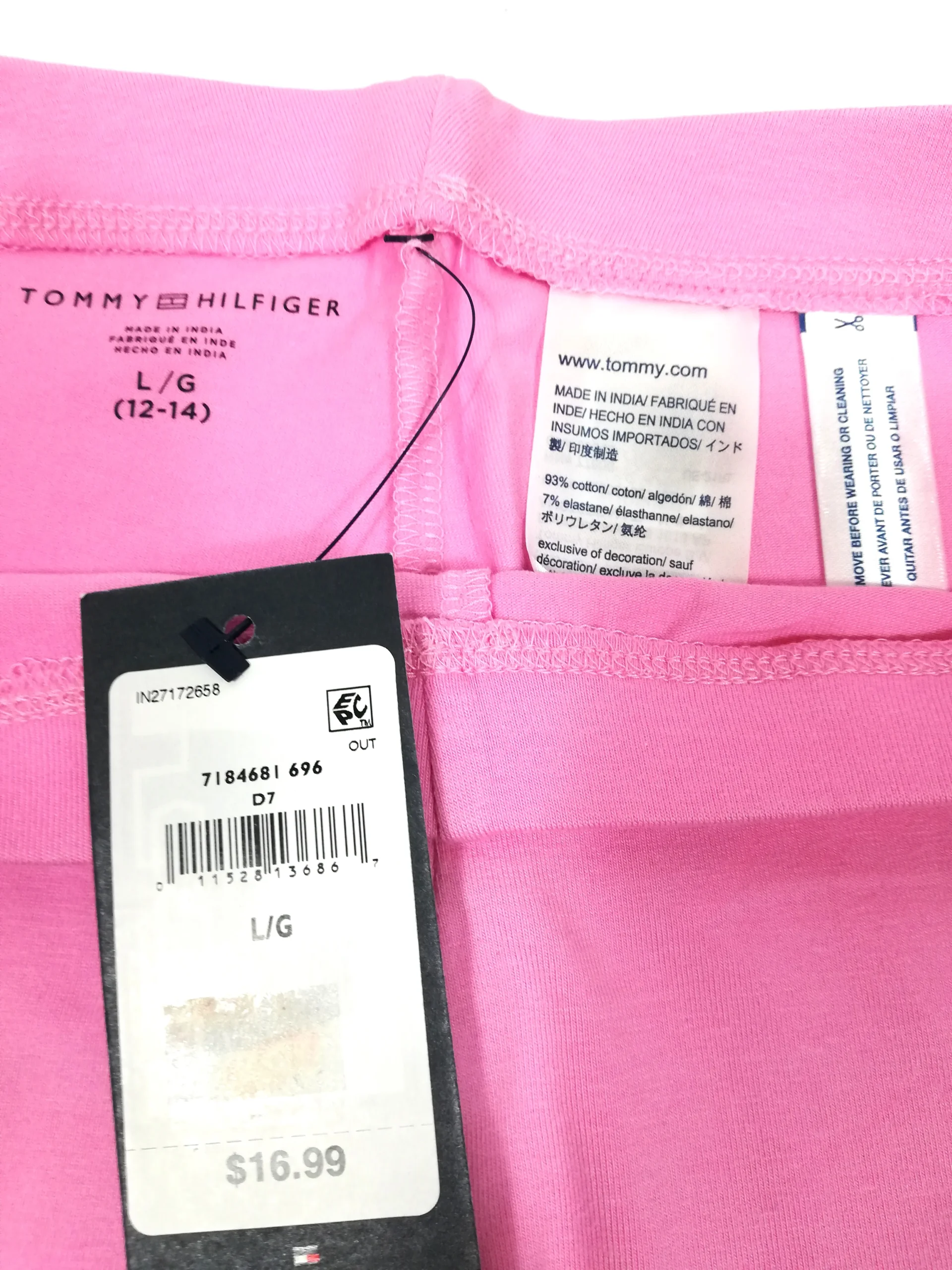Perfect for school, weekend outings, or everyday play, these Tommy Hilfiger Youth Girls’ Leggings in large (12–14) combine classic comfort with sporty refinement. The elastic waistband ensures a snug yet flexible fit around a ~27″ waist, while the gently stretchy fabric accommodates movement without constricting. The full-length design stretches seamlessly to the ankle for easy layering under dresses or with tees. Made of soft cotton with elastane for flexibility, these leggings promise day-long breathability and durability. Machine washable for fuss-free care.