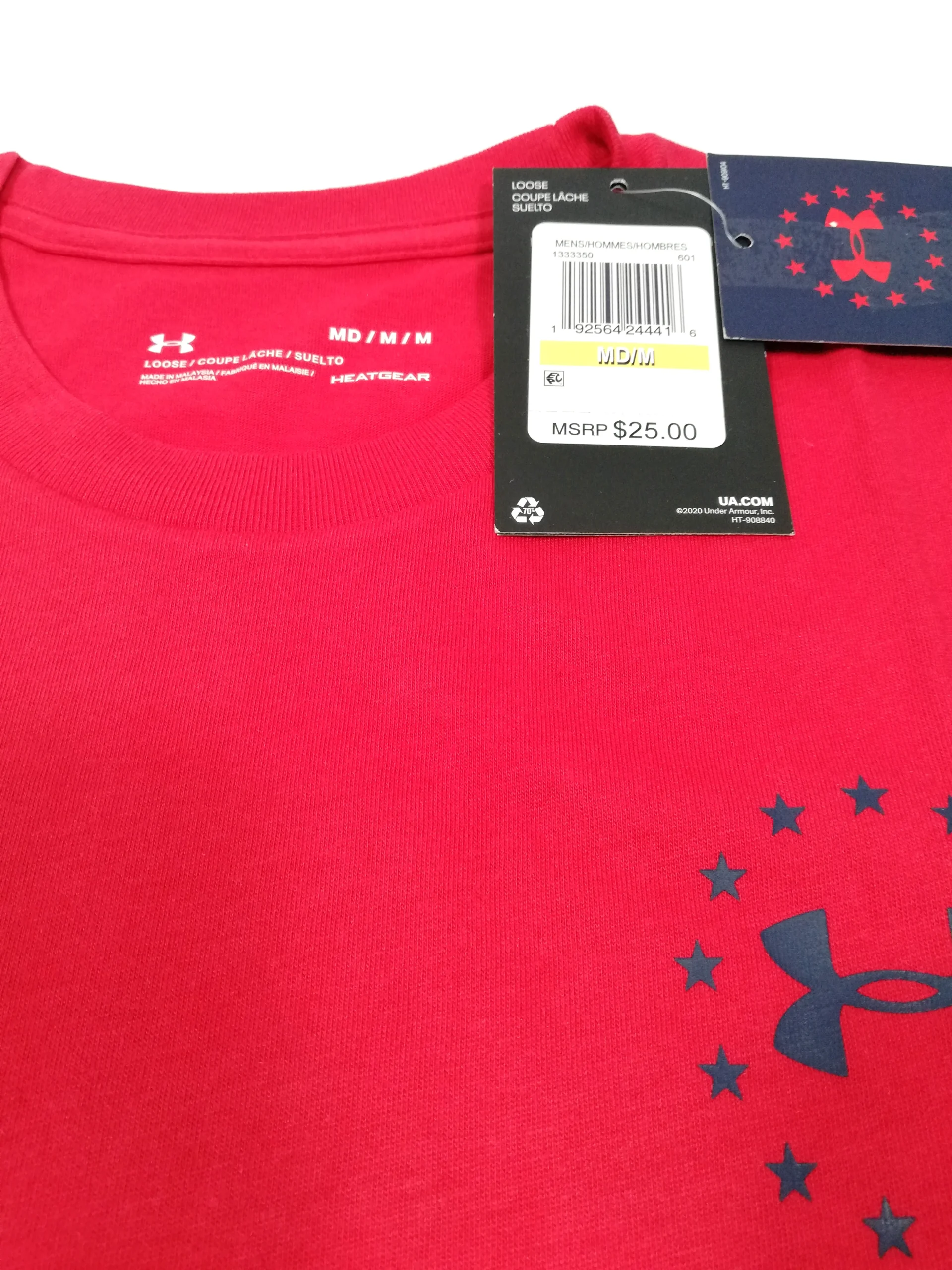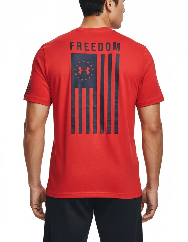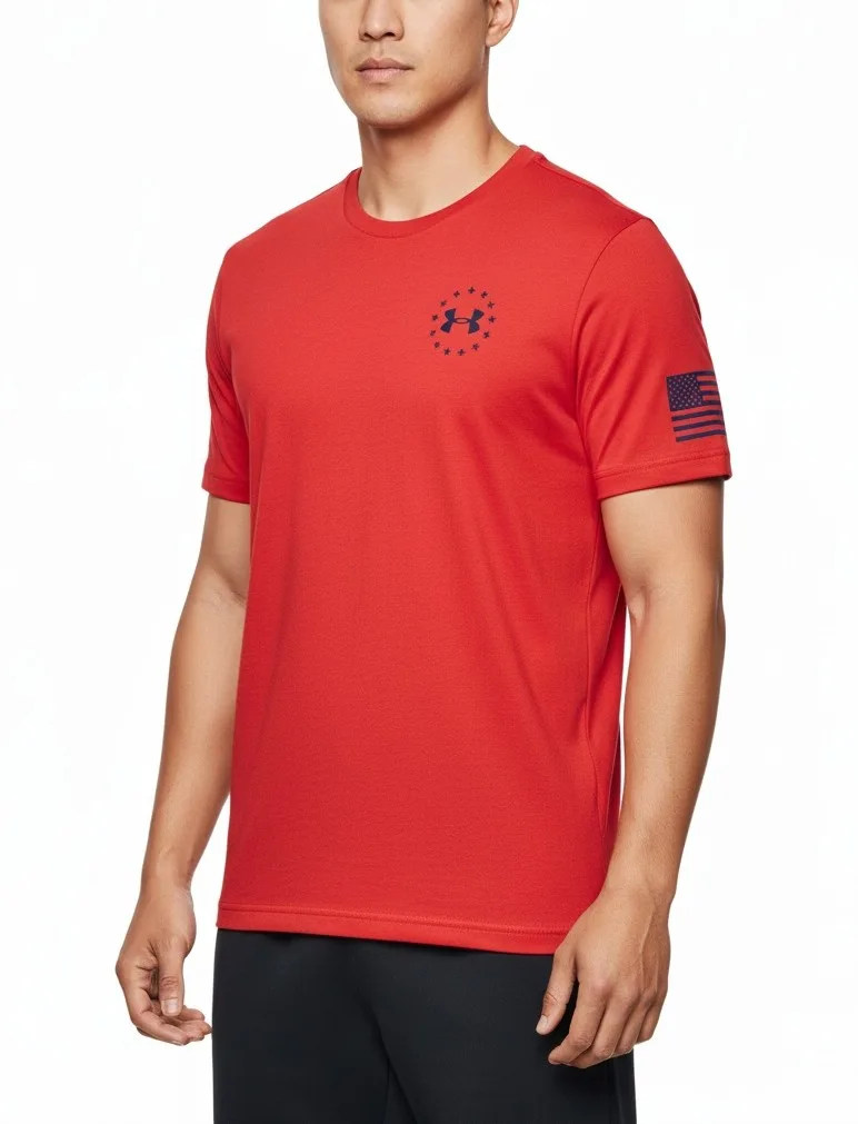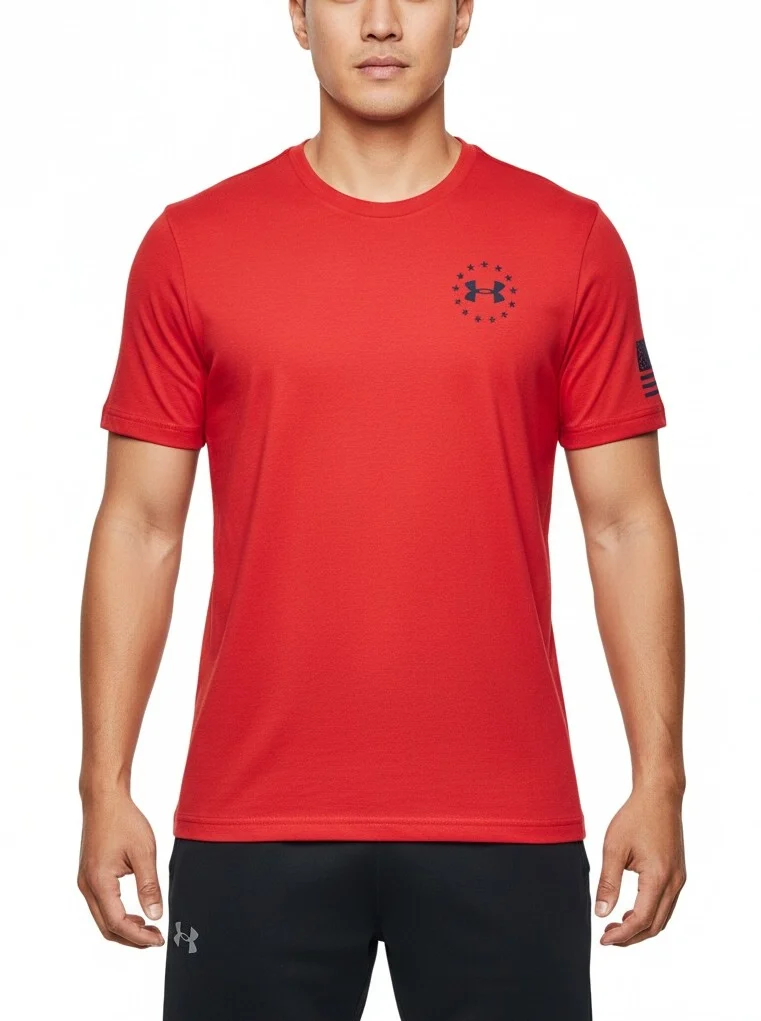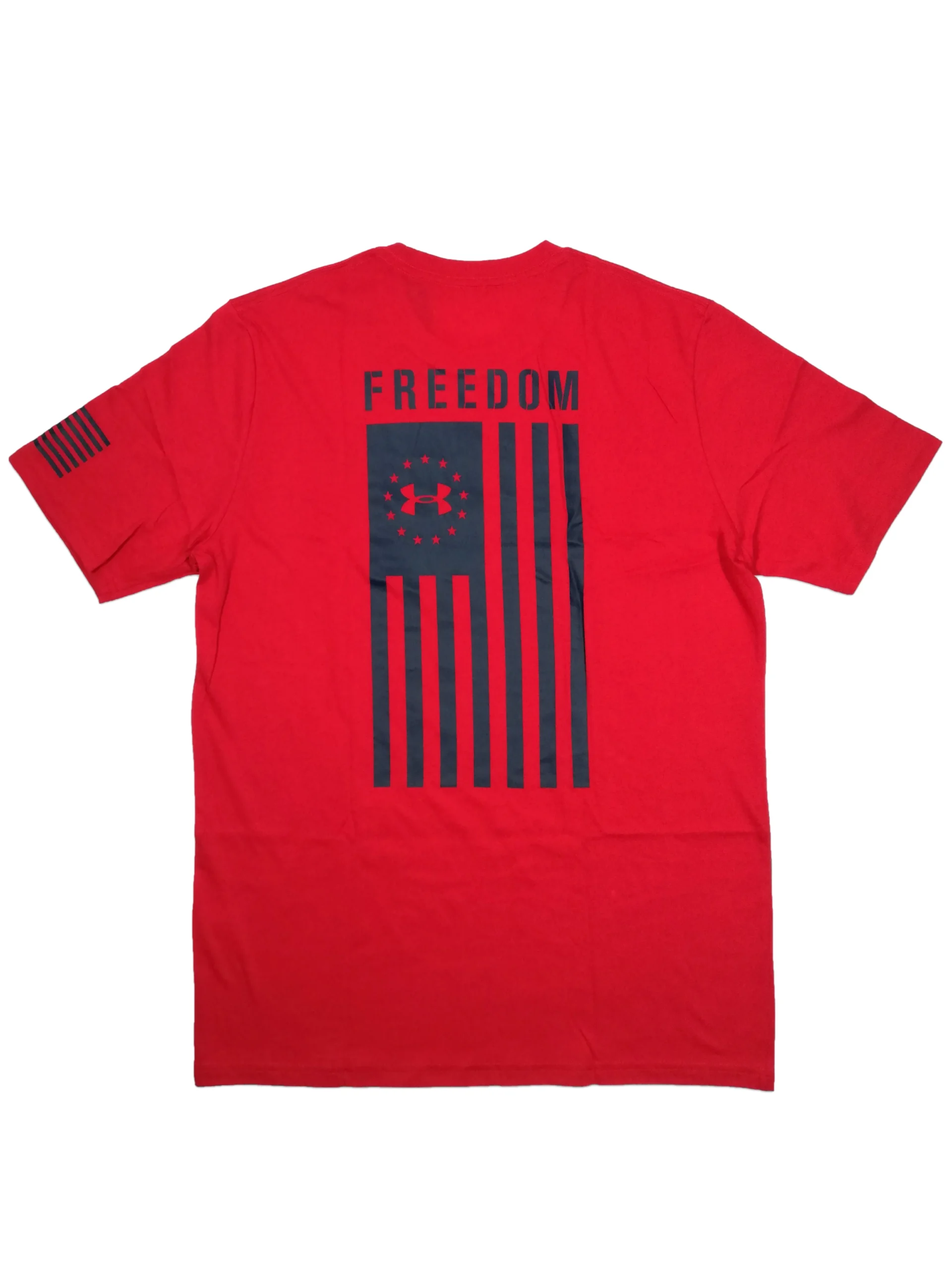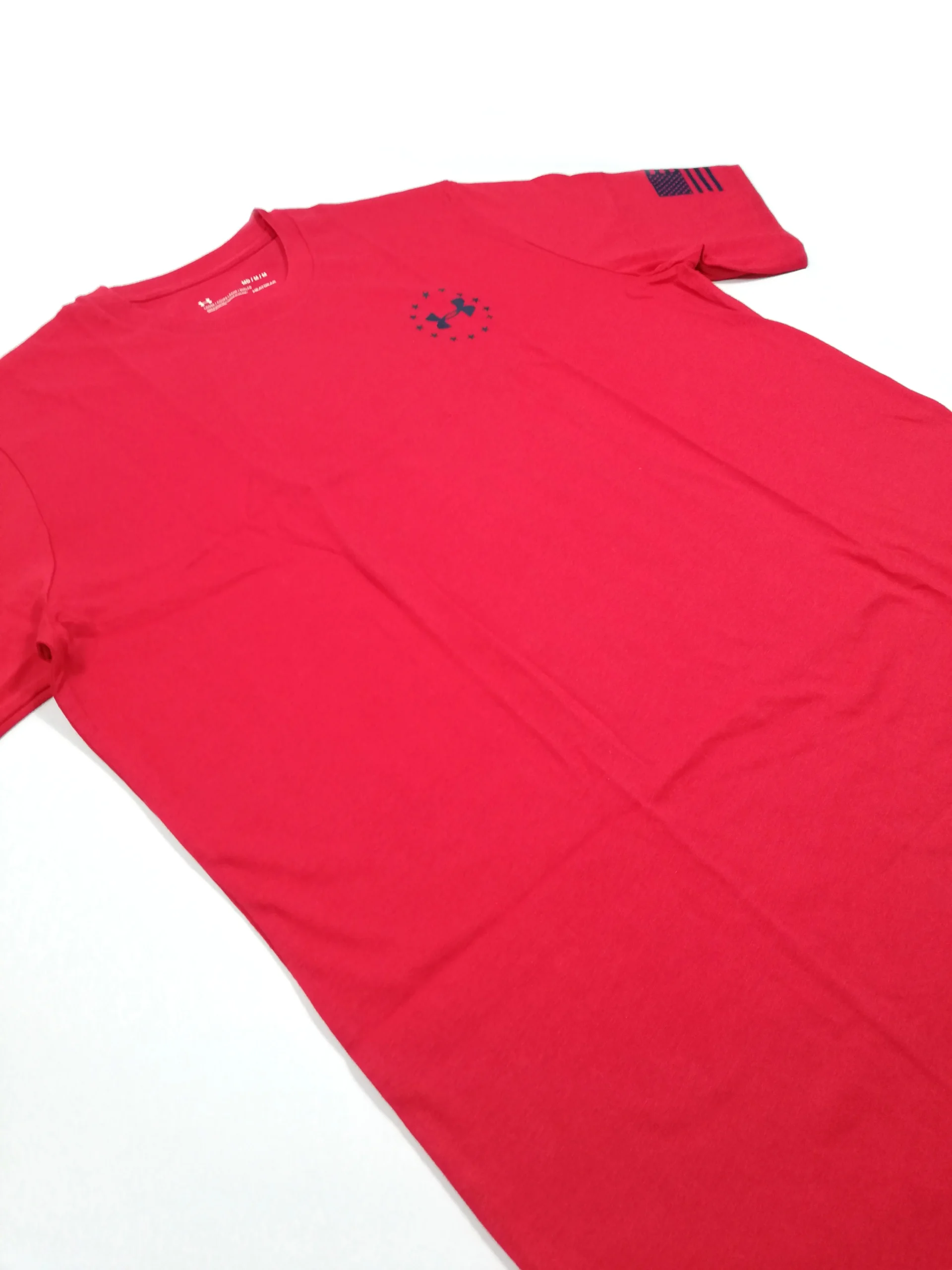 Show your support with performance and pride in this Under Armour Freedom Flag T-Shirt in red, size Medium. Designed as part of the UA Freedom collection, this shirt features a bold American flag graphic alongside the iconic UA logo. Crafted from a soft, moisture-wicking cotton-poly blend, it keeps you cool and comfortable whether you’re training or taking it easy.