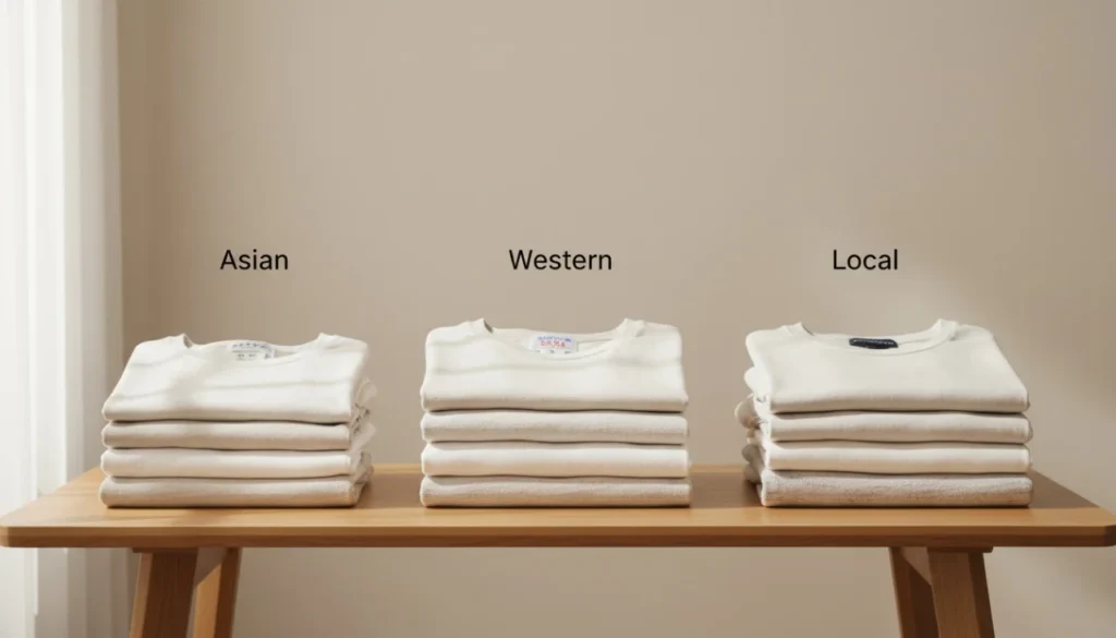 Where a brand comes from affects how its clothing fits. Asian brands, especially from Japan, Korea, and China, often design with more petite body frames in mind, which means their clothes tend to run smaller. In contrast, Western brands from the US or Europe cater to generally taller and broader body types, resulting in larger fits.
